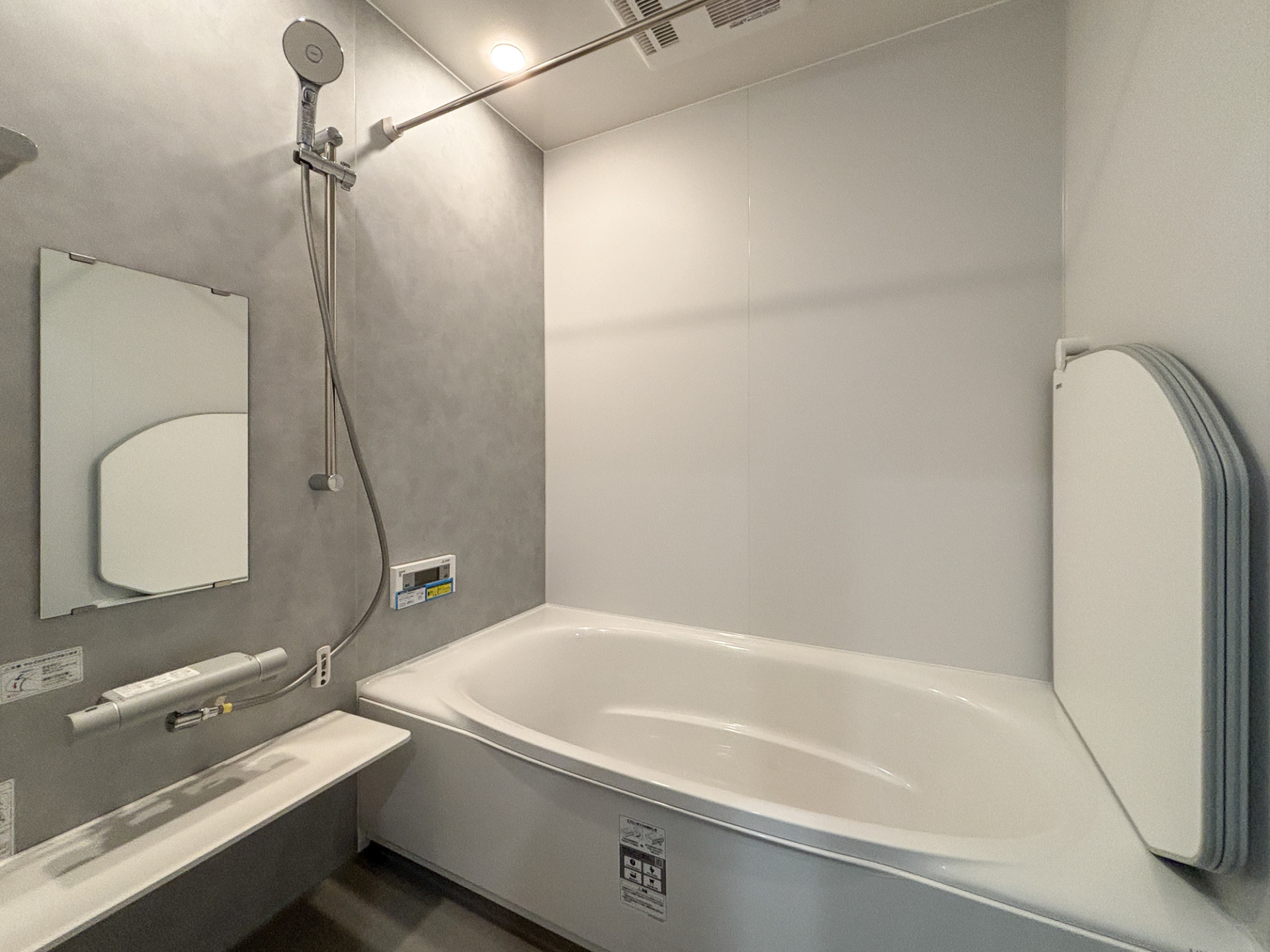 グレーにまとめたゆったりと浸かれる浴槽です。