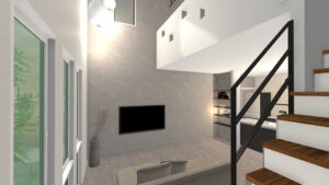 「南向きの吹抜けで明るく開放感のあるお家プラン」