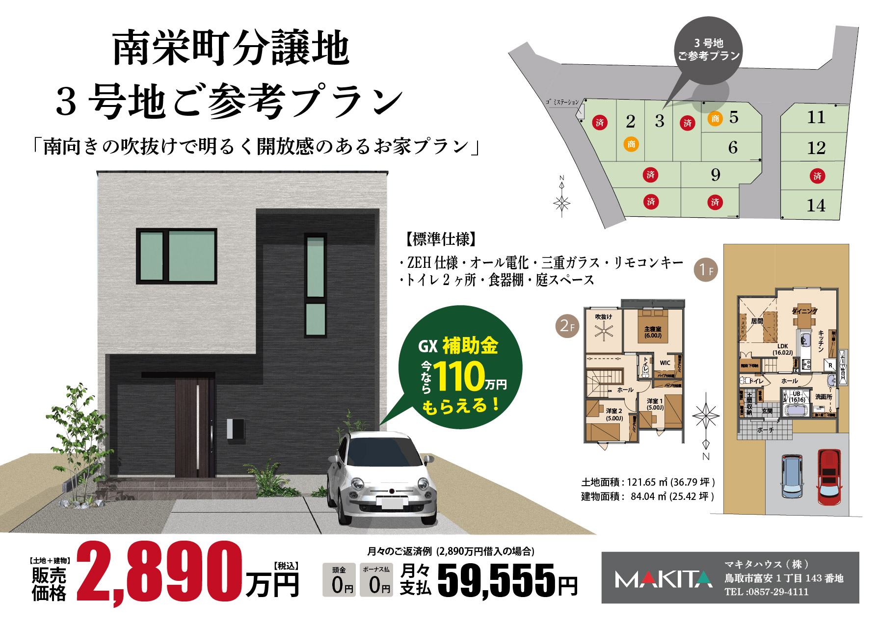 | 3号地 | 土地面積:121.65㎡ 坪数:36.79坪 |