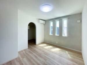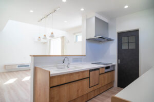 大きな窓からやさしい光が差し込み、明るく心地よいリビングダイニング。カウンターキッチン前のスタディスペースは、お子さまの学習やリモートワークにもピッタリ。家族が自然と集まり、それぞれの時間も大切にできる、そんな暮らしが叶います。