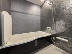 落ち着いた色合いでゆったりくつろげるバスルーム。