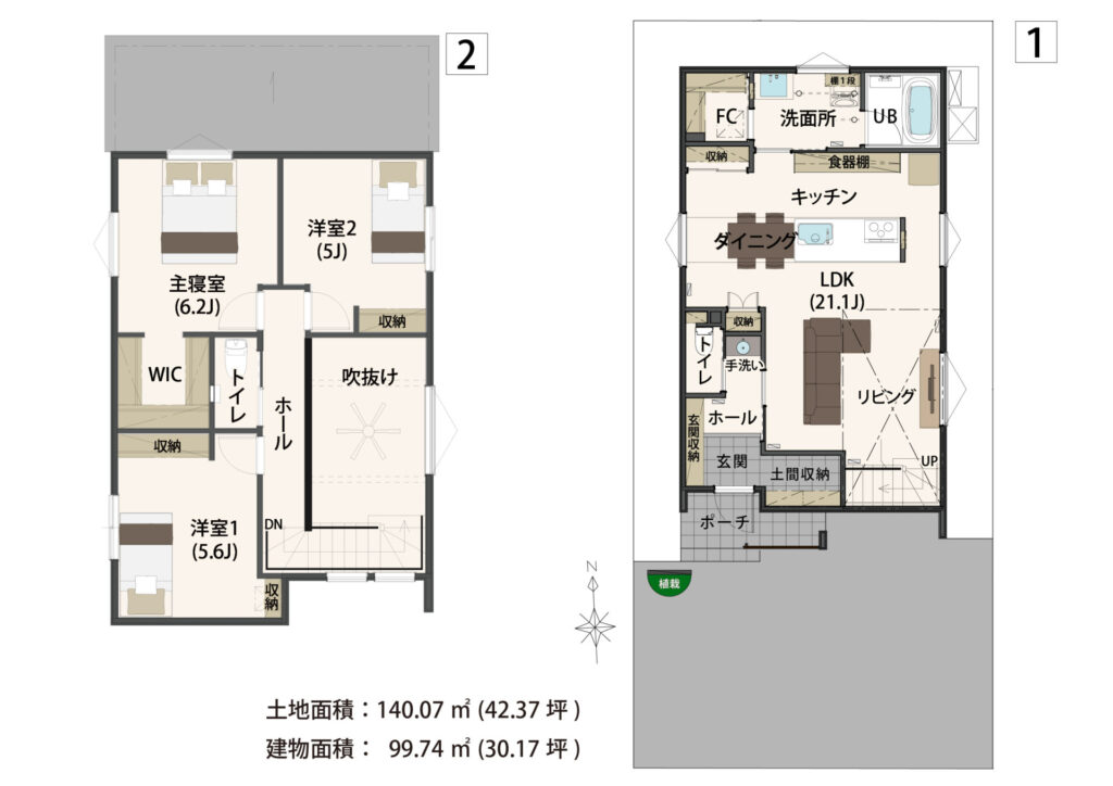 | 3号地 | 土地面積:140.07㎡(42.37坪) 建物面積: 99.74㎡ (30.17坪) |